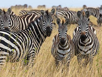 The Serengeti is well known for the largest annual animal migration in the world of over 1.5 million blue wildebeest and 250,000 zebra along with smaller herds of Thomson's gazelle and eland. The national park is also home to over 3,000 lions, 5,000 African bush elephants, 30,000 African buffalo and 70 Eastern Black Rhinoceros. The park is listed by the United Nations Educational, Scientific and Cultural Organization as a World Heritage Site. It is designated as a Category II protected area under the system developed by the International Union for Conservation of Nature, which means that it should be managed to protect the ecosystem or ecological processes.    When to visit? It is a matter of choice whether you would like to plan your Serengeti safari around the Great Migration. We have mentioned earlier that the Serengeti is a year-round destination as it covers a vast area and offers unparalleled wildlife viewing. Chances that you will be at the exact spot of the Great Migration herd crossing a river (either at the Grumeti or Mara River) are very slim. Also, the timing of herd movements cannot be guaranteed. However, if you choose the right part of the Serengeti: the southeast and Ndutu from December through to May, the Western Corridor from May to July, the Serengeti Mara area from July trough to October, and the northern Serengeti and Lobo area in October and November, large herds of wildebeest and their entourage should be easily located. |
